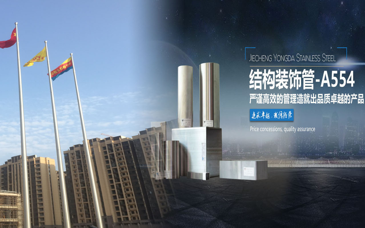 湖南杰誠永大不銹鋼有限公司是一家集研發、設計、生產、銷售于一體,專業生產錐形旗桿、電動旗桿,頒獎旗及食品\藥品機械用不銹鋼管,薄壁飲用水管等系列產品的綜合型現代化企業。旗桿產品在廣東省、湖南省、江西省等重要行政機關擔任重大升旗任務,不銹鋼管也成為重要場館,眾多食品藥品機械廠...